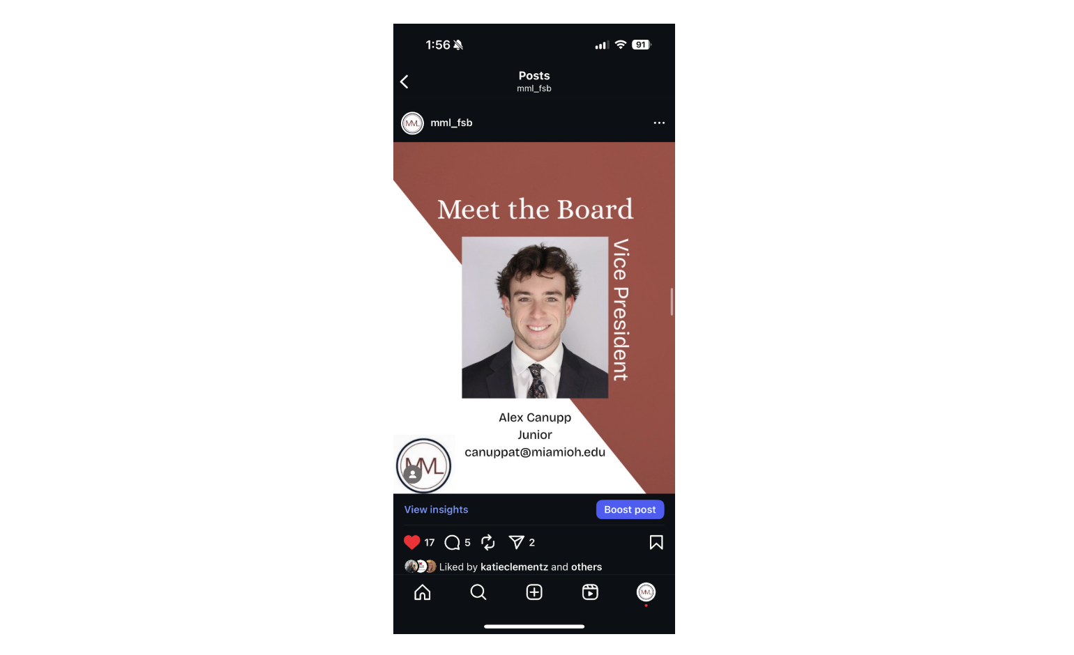 We’re excited to have Alec bringing creativity and innovation to MML this year! If you have any questions about the club, feel free to reach out to him at grenolad@miamioh.edu