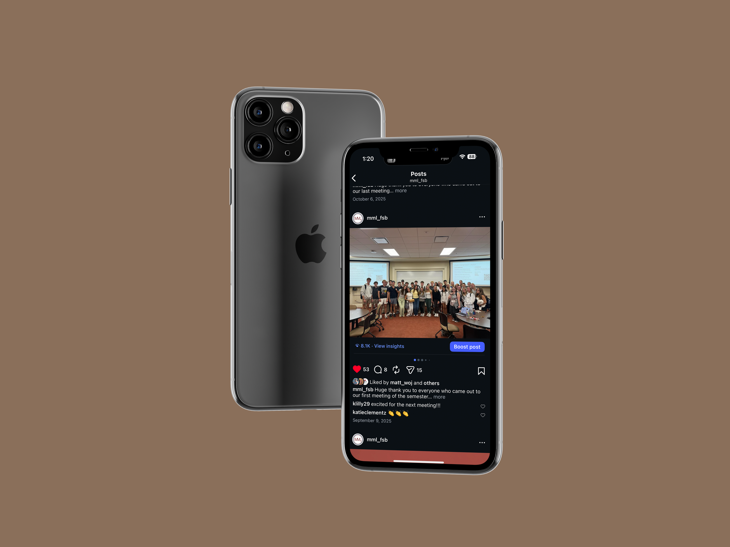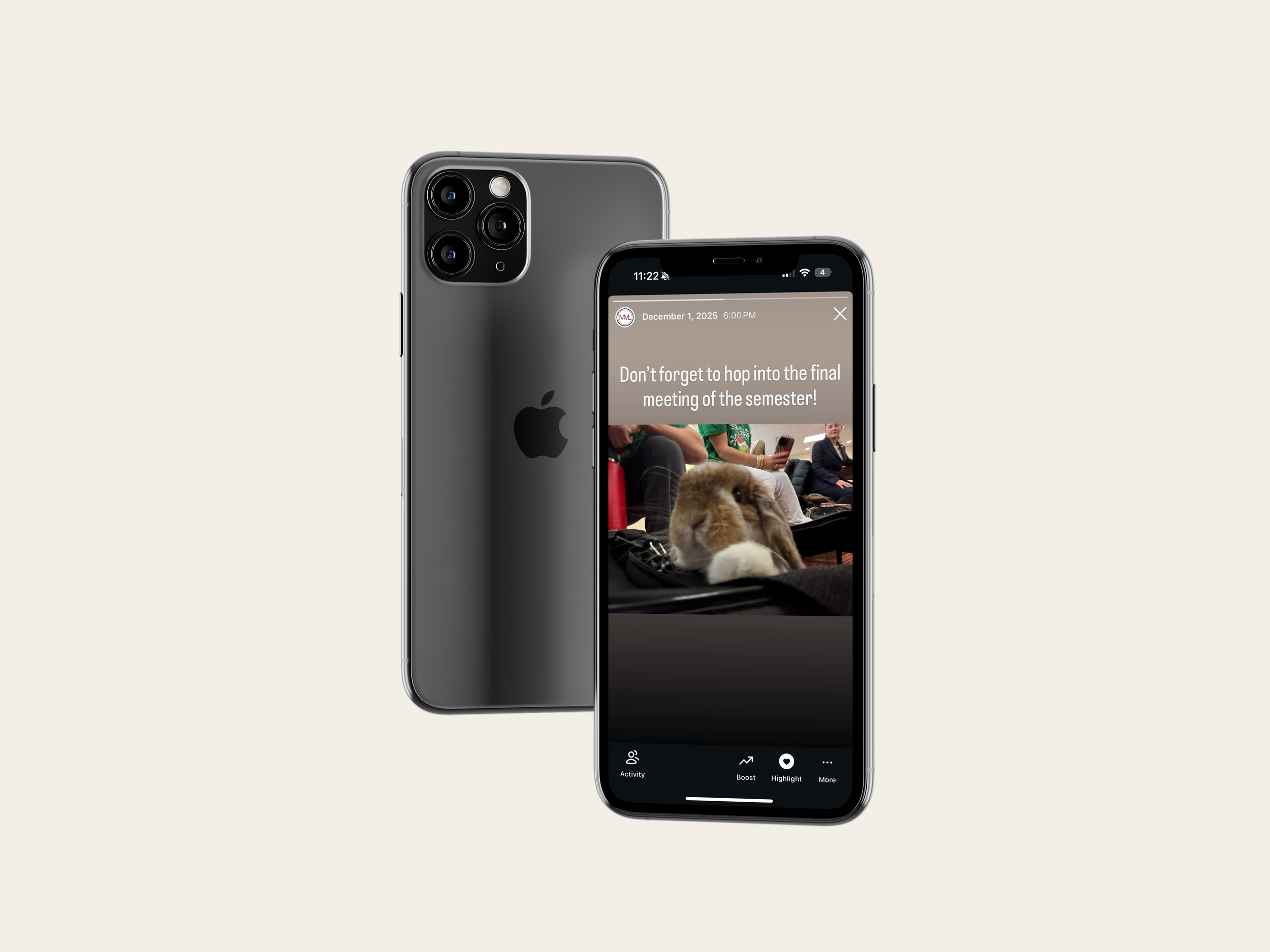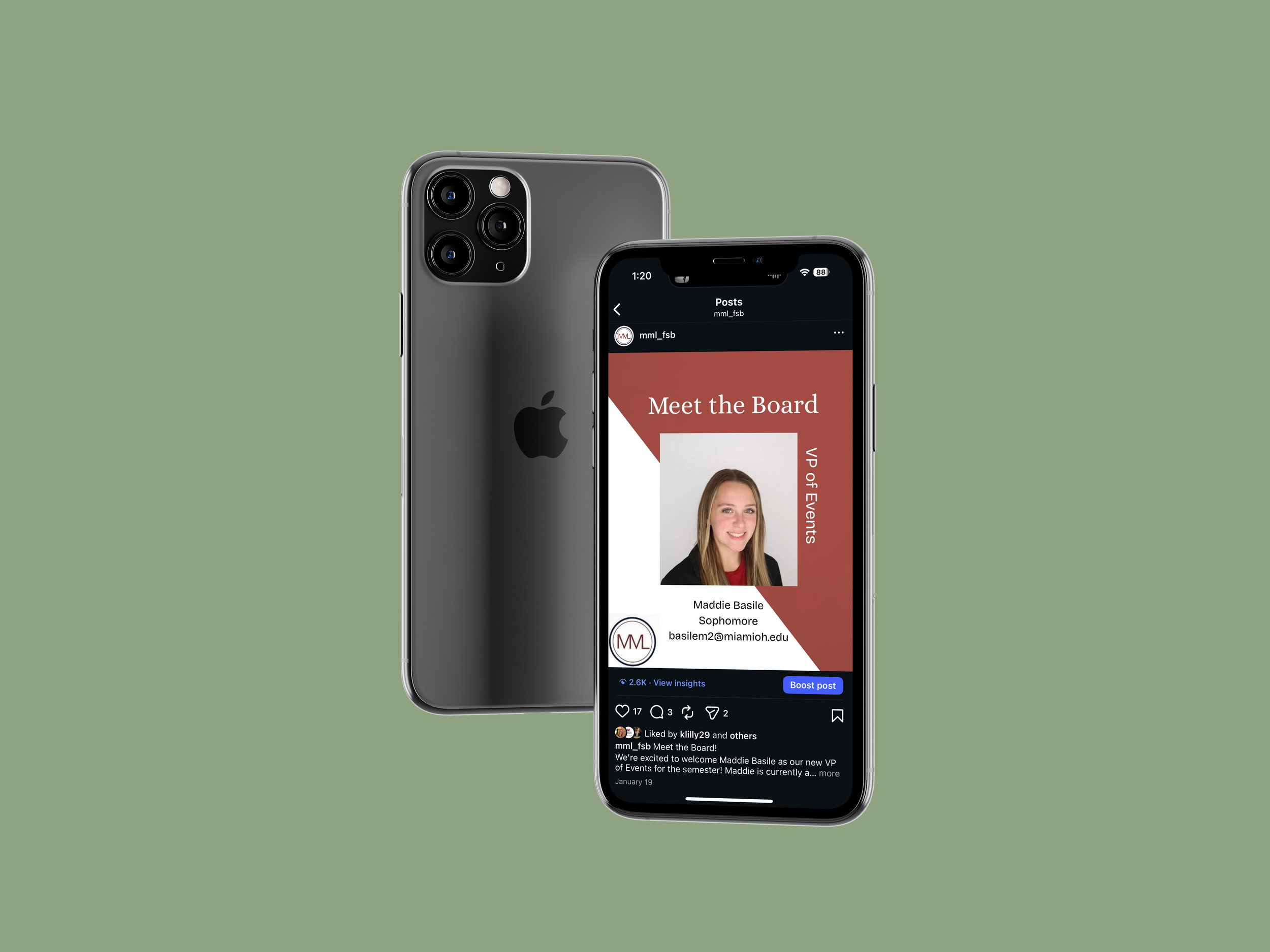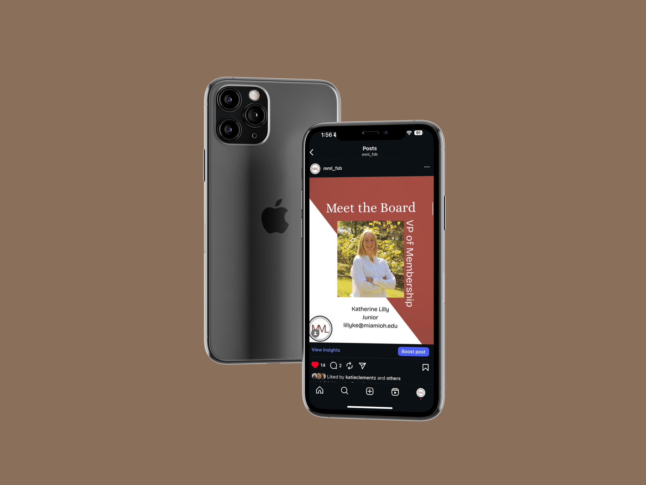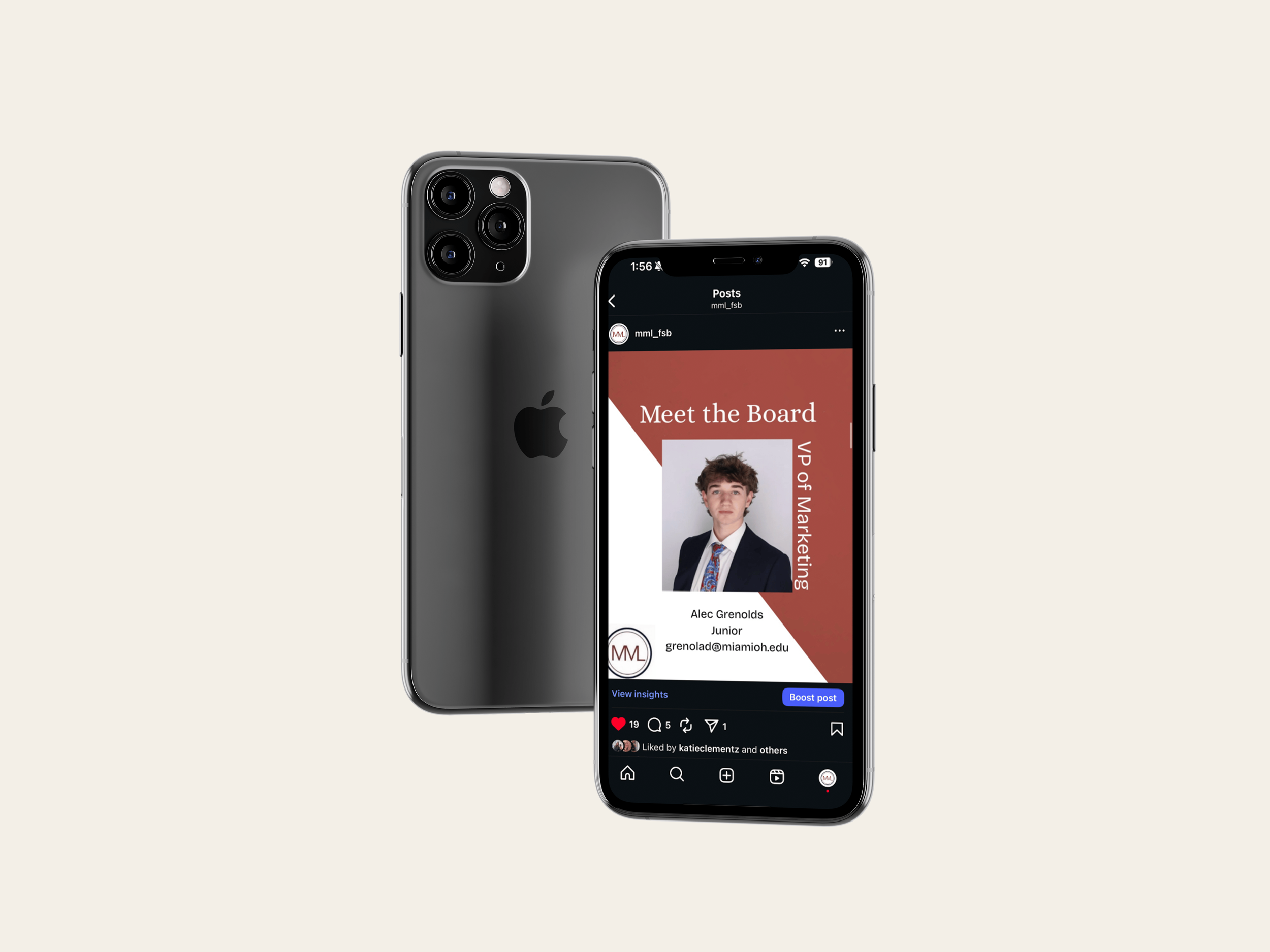 I created these posts in Canva, where I built a consistent layout and look for the executive board series. For other content, I took photos during meetings and used those to make recap posts that felt more real and tied to the club’s events. I also edited a short reel from a Poppi-sponsored meeting in CapCut and made a story post using a meme format to keep the content more fun and relatable. To present everything in a cleaner way for my portfolio, I placed the final posts into phone mockups in Photoshop. Overall, this project shows both the design side and the more day-to-day process of creating content for an organization’s social media.